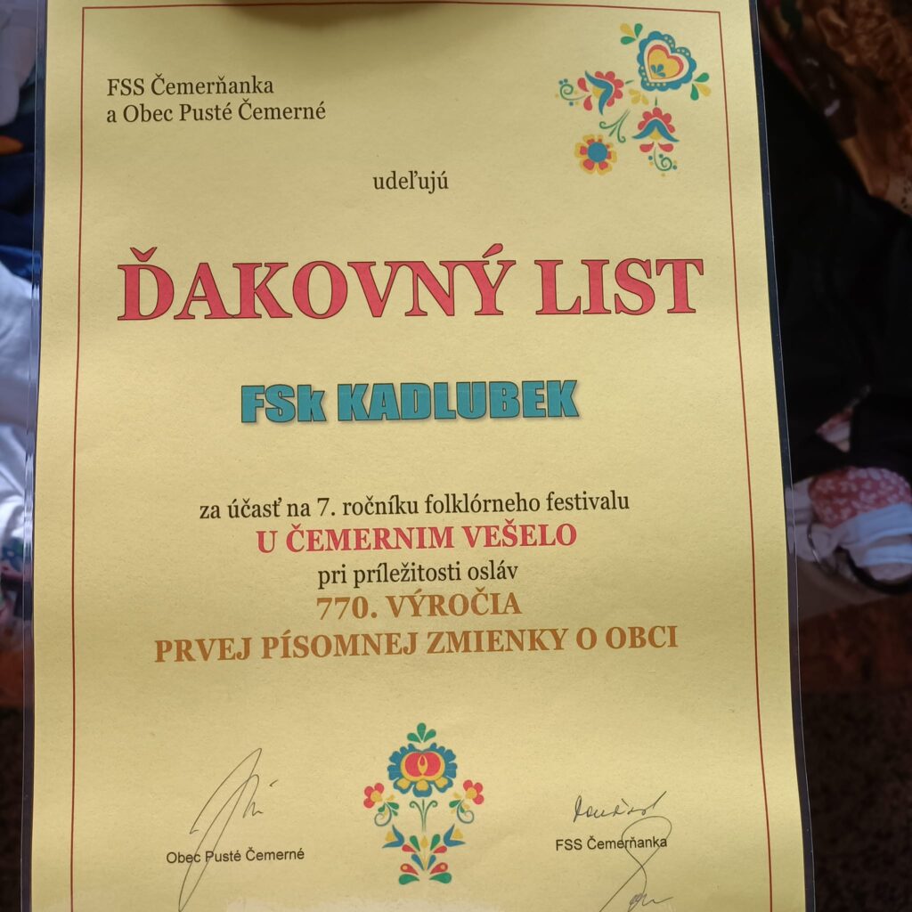 Dnes sme sa s radosťou zúčastnili folklórneho festivalu „U Čemernim vešelo“. Svojím spevom a tancom sme prispeli k skvelej atmosfére a teší nás, že sme mohli byť súčasťou tohto podujatia plného tradícií, hudby a radosti. Ďakujeme organizátorom za pozvanie a publiku za krásne prijatie!